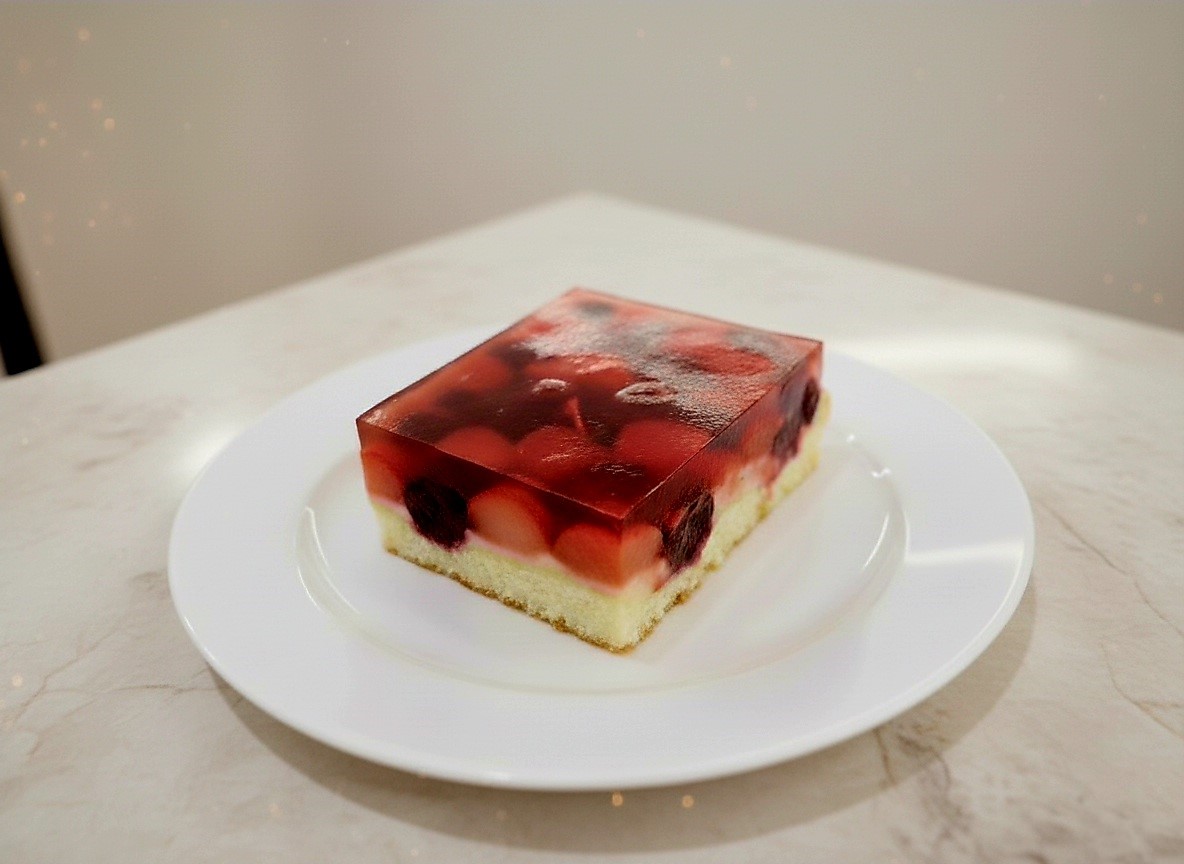 Jelly, Cherry, Strawberry, Custard, Sponge cake