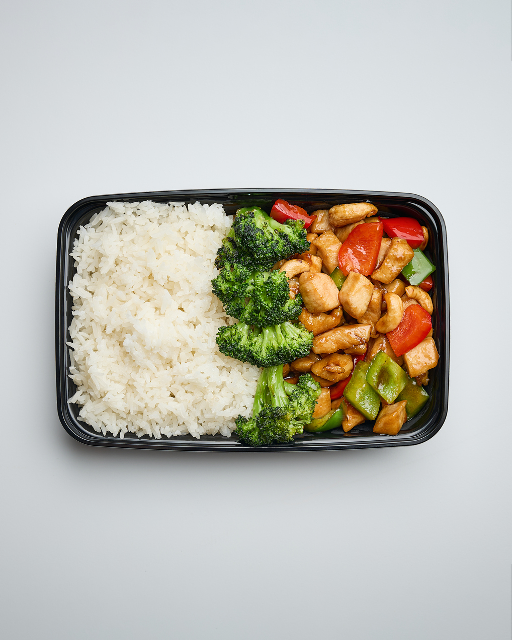 Chicken Cashew, fried broccoli, boiled rice . (350g)