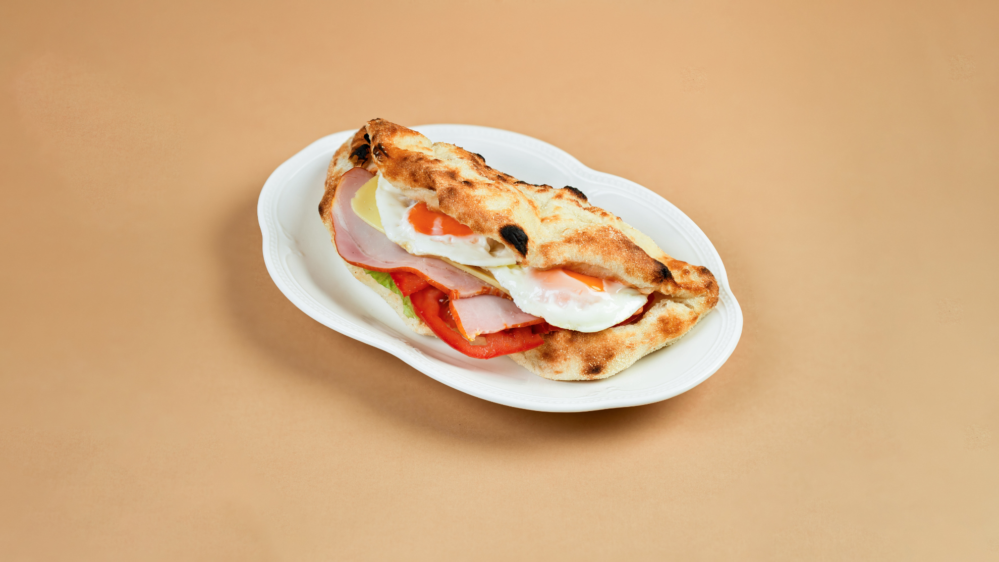 Homemade bread, ham, cheddar cheese, egg, tomato, signature sauce, lettuce