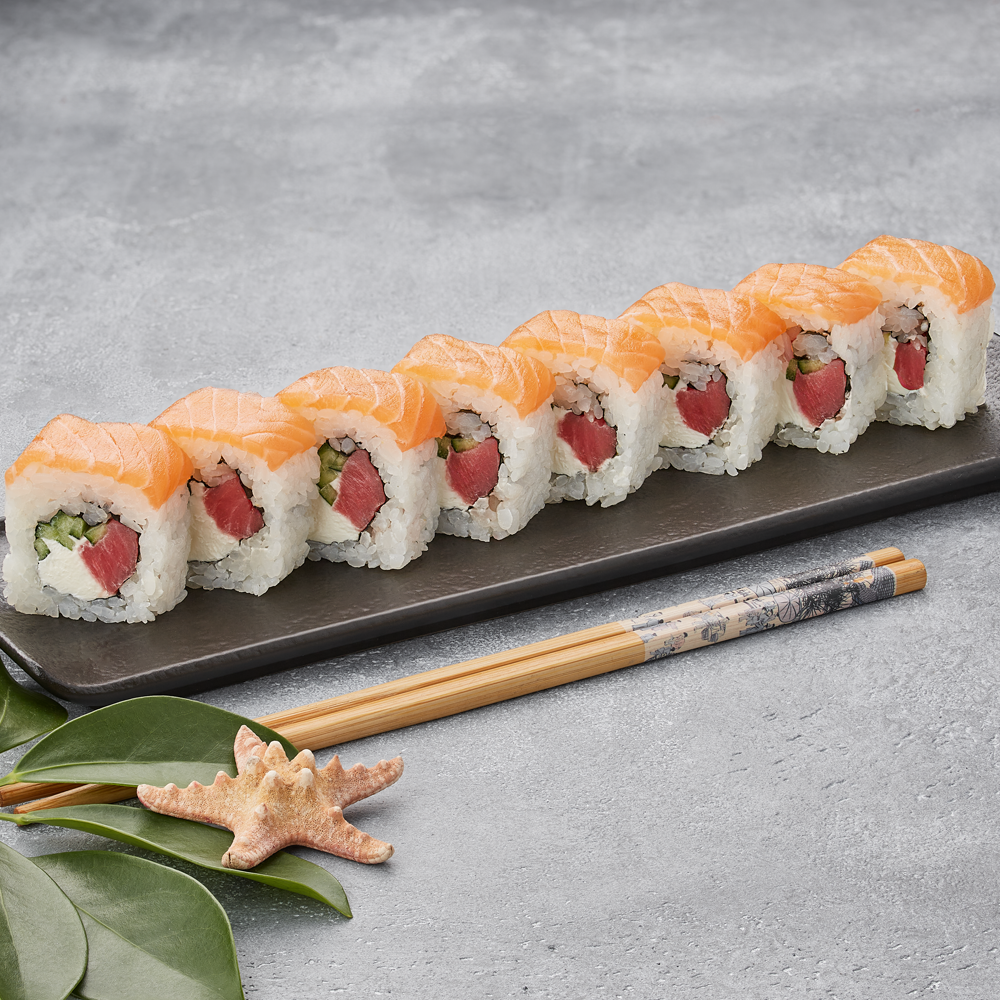salmon, tuna, cucumber, cheese