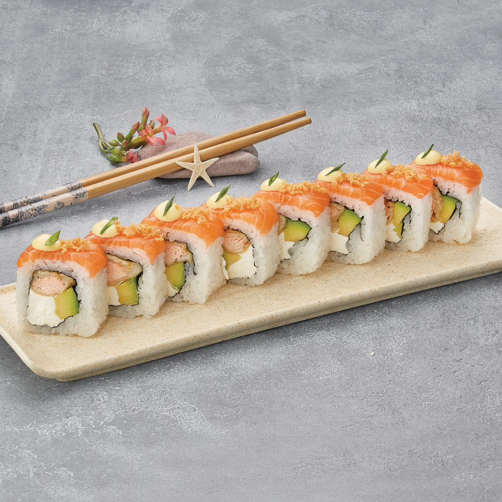 4 pcs, shrimp, tobiko, avocado, cheese